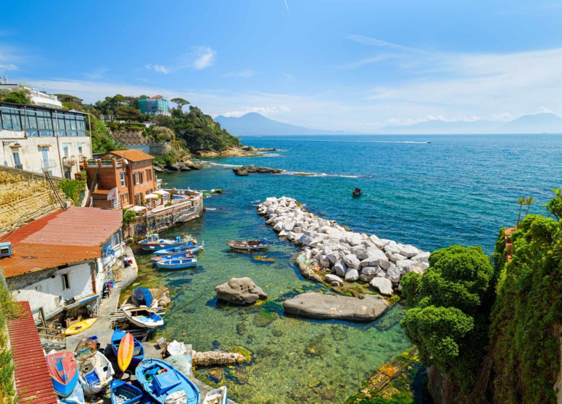 Continue to Posillipo, Naples’ most exclusive neighborhood. Perched high above the bay, this elegant area offers panoramic views of Vesuvius and the islands. Stroll through its scenic terraces and hear stories of ancient villas and aristocratic retreats.